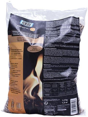 Katalityczne granulki pelletu czyszczącego do kominów powodują, że pozostałości ze spalania, a w szczególności smoła, osadzona w przewodach kominowych i urządzeniach na pellet / ekogroszek (kotły, kominki, piece, piece kuchenne itp.), stają się niepalne. Pozostałości te są odpowiedzialne za większość pożarów kominów.