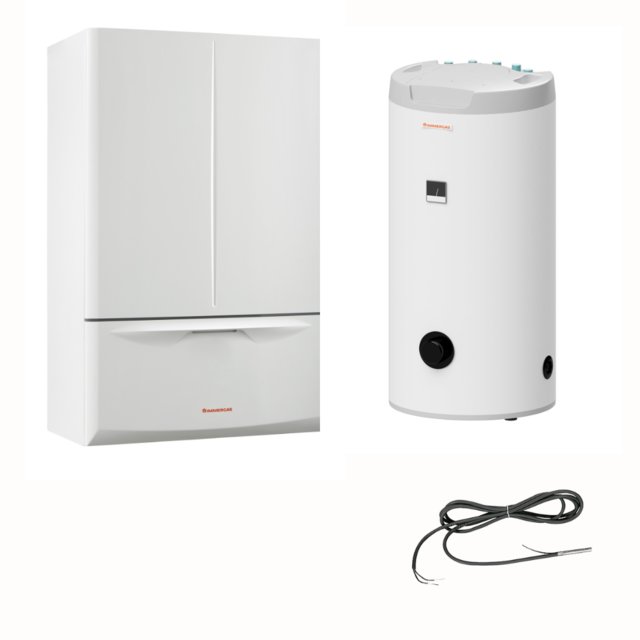 Zestaw EXTRA 35 Standard 160 to zestaw z kondensacyjnym kotłem jednofunkcyjnym VICTRIX EXTRA 35 PLUS i zasobnikiem c.w.u. ze stali emaliowanej o pojemności 160 litrów oraz sondą temperatury do zasobnika