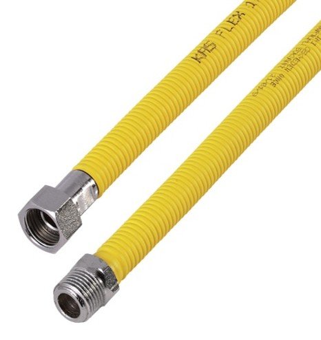 Rozciągliwy przewód przyłączeniowy z karbowanej stali nierdzewnej do podłączania kotłów gazowych do użytku domowego, zasilanych paliwami gazowymi z grupy I, II i III umożliwiające bezpieczne i wygodne podłączenie urządzeń gazowych do instalacji. Rozciągliwa konstrukcja pozwala dopasować długość przewodu do konkretnego montażu.